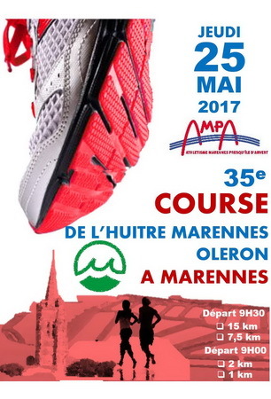 Jeudi 25 mai. Lors de ce long weekend étésien, deux Ascoriens en séjour balnéaire dans la région ont participé à la 35 ème édition de la course de l'huître à Marennes (17) Sur le 15 km Daniel G 01:20:56 Sophie G 01:35:08