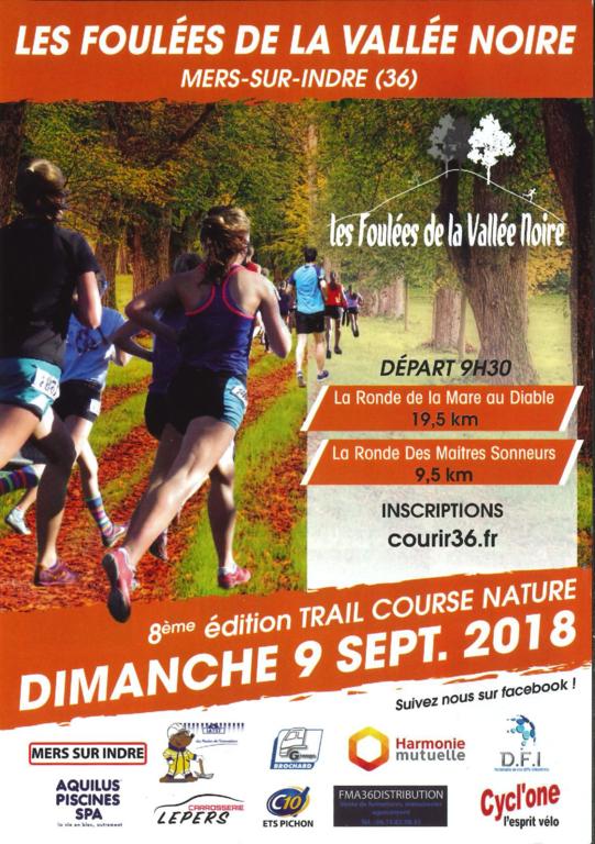 Notre ami Pierre P a franchit les limites de notre département pour participer aux Foulées de la vallée Noire à Mers sur Indre (36) Il franchit la ligne d'arrivée des 19,6 km en 02:15:59.